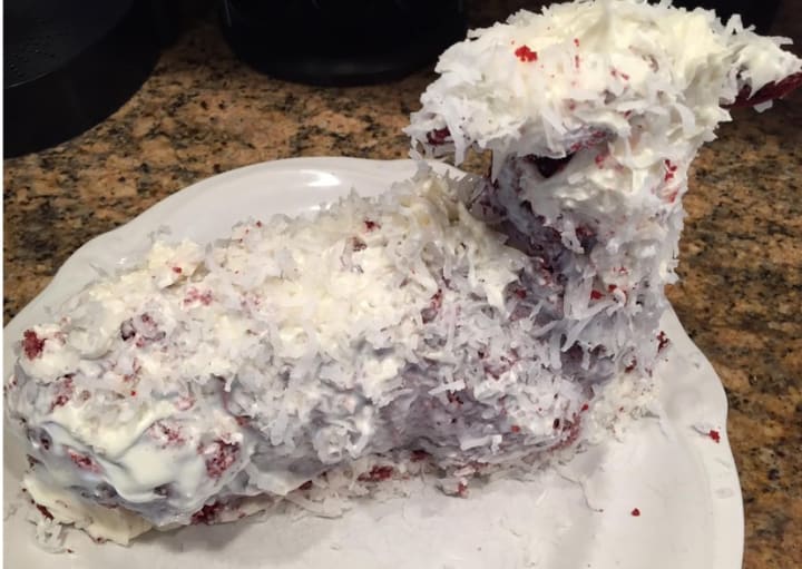 Junie gave Kat instructions on what to do, but, this was her first lamb cake too, so she hoped it wouldn't be too hard to make something that at least resembled the cake on the cover. Wrong! The cake did not fill up the mold, and got stuck in places, most of the coconut somehow landed on the floor, and the frosting was a bit thick, making it hard to spread evenly. But the troubles only annoyed Junneth, Kat was happy to be making something for her friend, she didn’t want the cake to really look like a lamb anyway, she wanted it to look like Tootsie, and finally when Junie was committed, Kat told her who the cake was for and why. Junneth just kept her mouth closed, and a small muscle twitched, she knew tomorrow was Mike’s birthday.