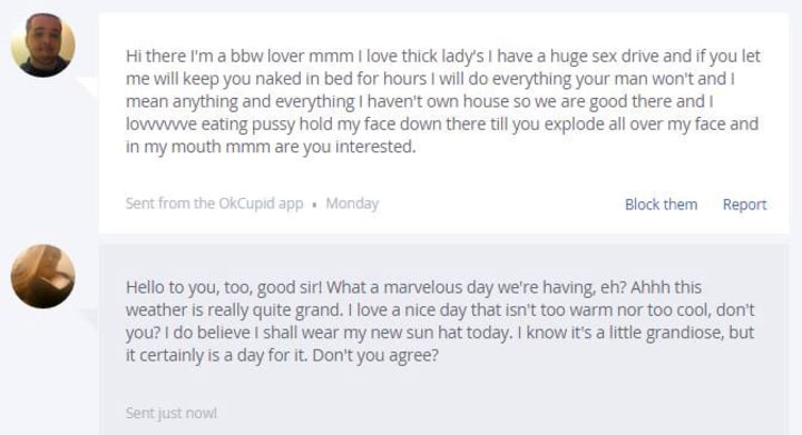 Over the years, I have cultivated six methods for clapping back at slimy DM crawlers. You can do it, too! I'll share the techniques along with some amusing samples below.