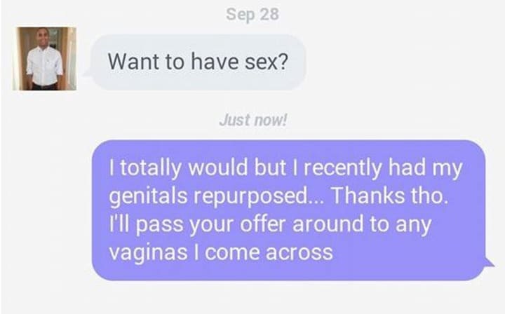 Hopefully, these images gave you some ideas for responses next time a creeper slides into your DMs.