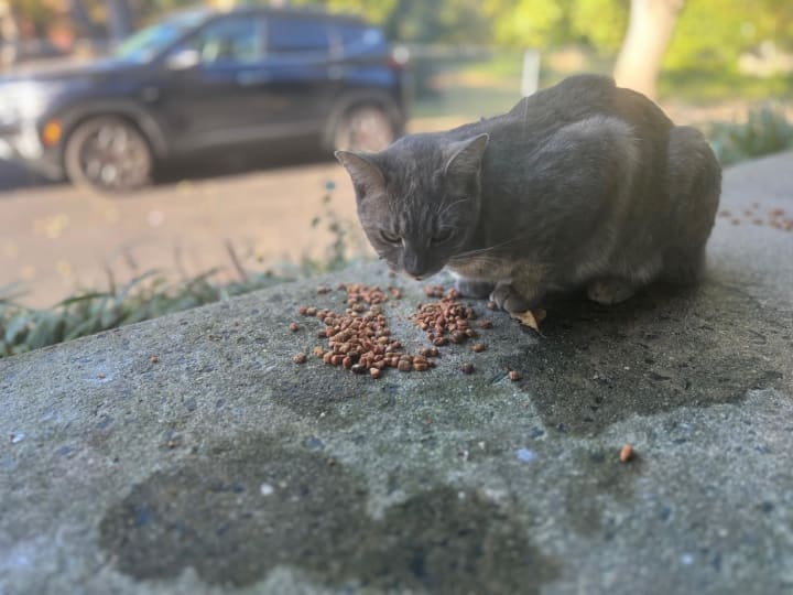 I feed an unhoused cat, I later found out that there are more than 3 of them. The one I started feeding is a kitten, the others are older, I have no idea who would throw their cats outside. It shows how shitty a human they are, they should be embarrassed about seeing their cat outside.