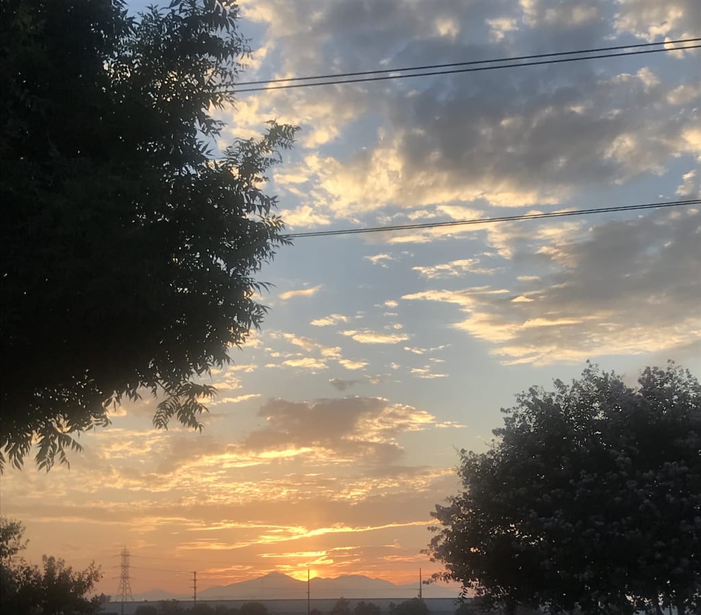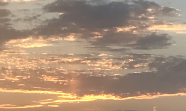 I stretched and got up and went to the open window in my bedroom. I watched the sun rise over the ocean into pale yellow clouds and a beautiful blue sky.