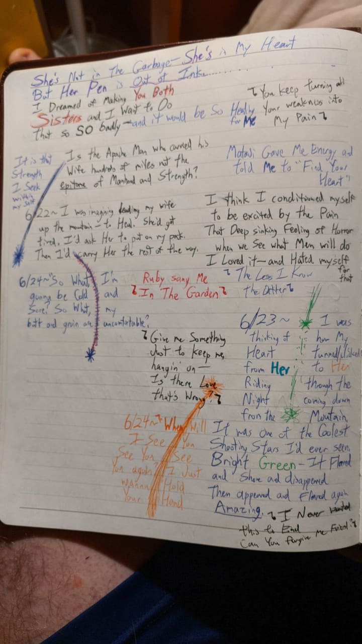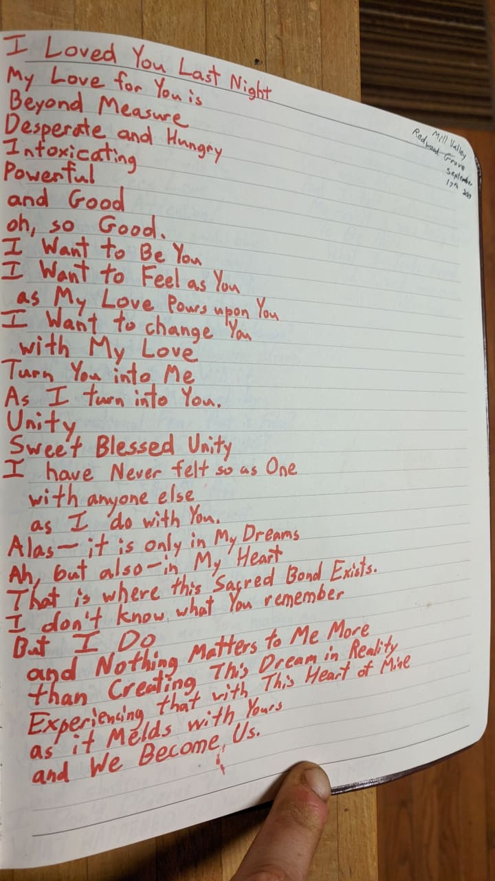 It was my Dream as a child to ride a bicycle across the country. This Journal is from that time as I did that. The three girls are all from back home. I didn't want a series of short shallow relationships/hook-ups as I moved around. I Loved these girls. I missed these girls. I valued these relationships. I knew that I Wanted to be with them.