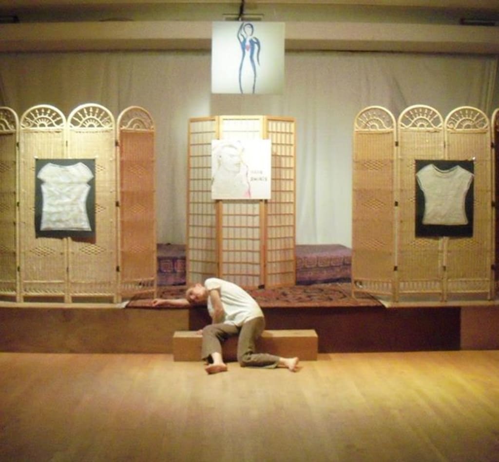 There's a big difference between healthy compromise and dysfunction. It took me time to admit that that relationship had been sexually abusive, as well as psychologically and emotionally abusive, because the sexual abuse wasn't overtly violent. It was only after working with a therapist for a few years that I could name what happened as sexually abusive, which was freeing. What I had experienced was intimate partner violence. Naming a thing can be powerful, and can help with healing. Part of my healing involved producing a performance art piece entitled "The Hair Shirts Project," which was centered around how we can internalize the terrible things people say to us and wear them like hair shirts until we become self-aware and remove the metaphorical shirts. The selected image for this piece is a picture from that show.