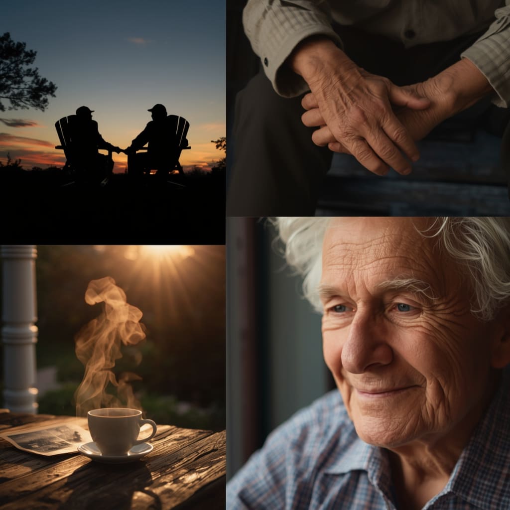 It happened quietly, without drama. We were sitting on the back porch of the house he had built with his own hands, the one with peeling white paint and the grapevines that swallowed half the fence. He was staring at the sky, as he always did at sunset, his fingers wrapped around a chipped mug of chamomile tea. I walked outside, dropped into the chair beside him, and he turned to me with polite confusion, as if I were someone’s neighbor who had wandered onto his porch by mistake.