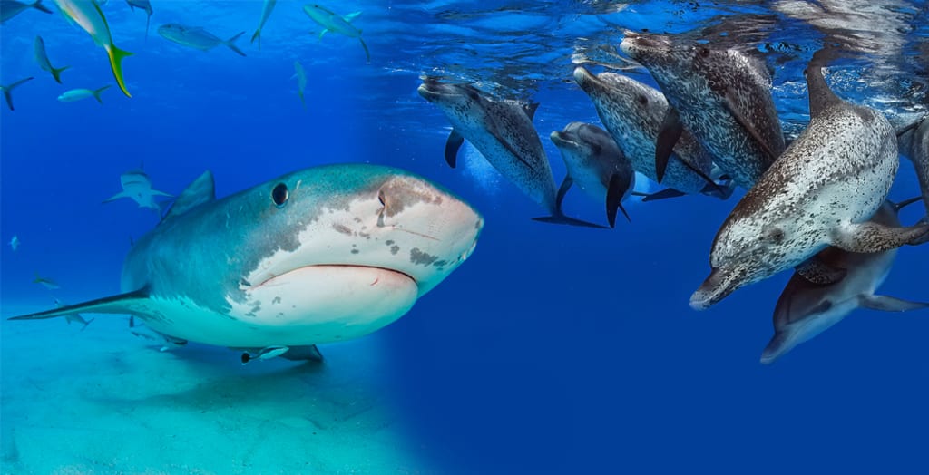 One day Jingo was swimming and came across a rather aggressive group of sharks that were like him, large, with angry eyes and hungry mouths. He knew he should try to steer clear of the area they were hunting in, but he also needed to eat. He stayed back as far as he could and got the scraps of the other sharks food’ Nothing substantial enough to call a real meal. Suddenly he felt like he was being surrounded, they had noticed Jingo and didn’t like him stealing their food, even if it was only the scraps. He began to feel nervous, thinking he was surely going to get shredded by these other sharks, when out of no where he saw not only his dolphin friends, but several more dolphins as well.