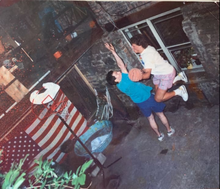 Even so, we continued with standard operating procedure at our subterranean dwelling. Ping Pong, our own version of indoor racquetball and wiffle ball, and since it was spring, the mini hoop was set up in the courtyard.