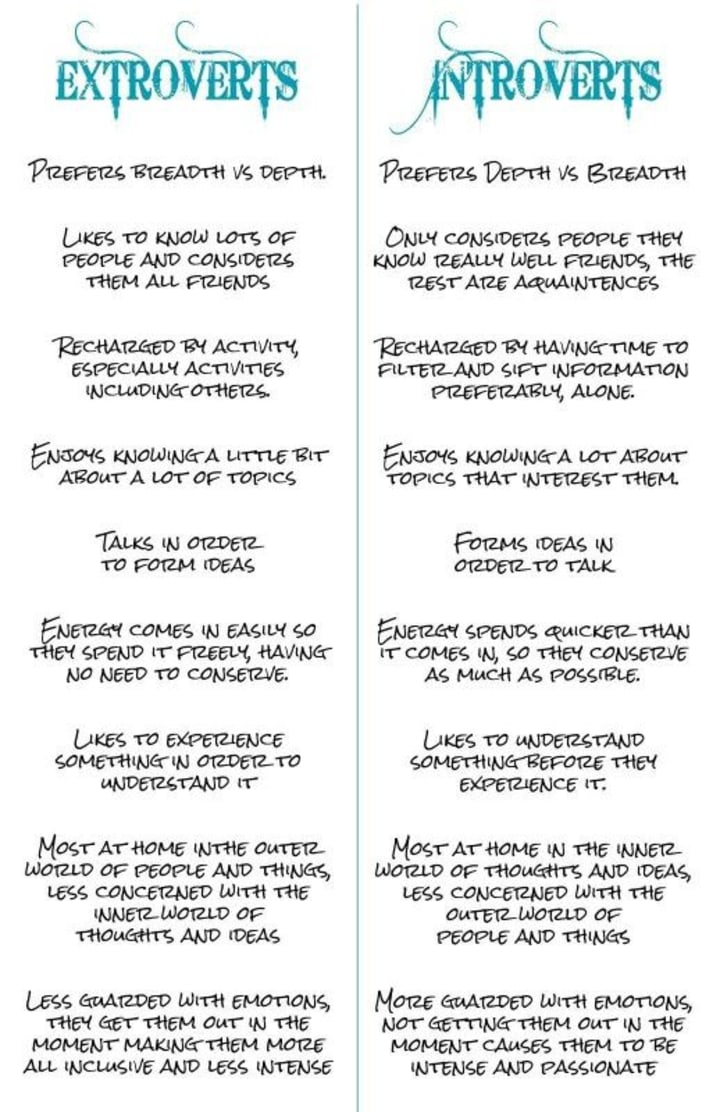 Here is a quick guide to understanding some key differences between Introverts and Extroverts.