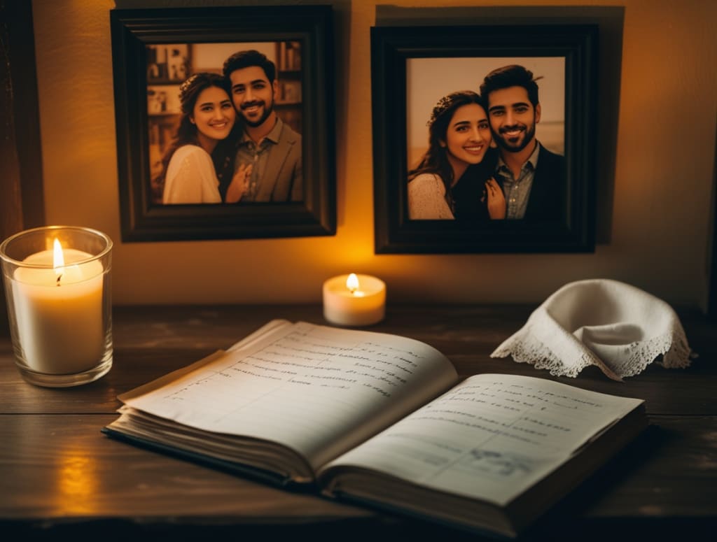 It was a small, candlelit room. The walls were lined with photos. Our photos. Her childhood photos. A diary rested on a table, open to a single page.