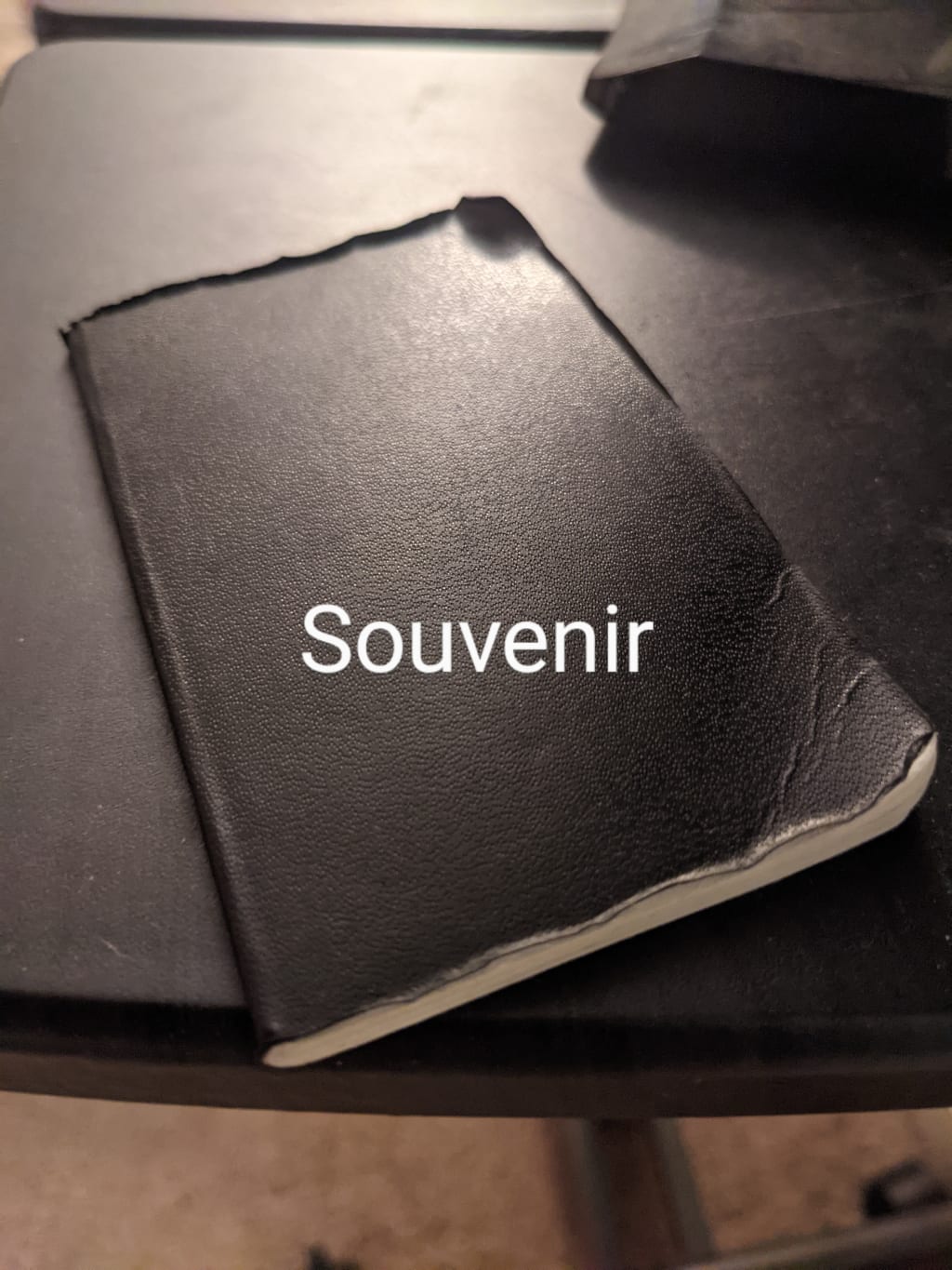 At last, I found myself on a well lit park bench. The sun began its descent, shining perfectly over my shoulder as the cover of the palm-sized black book fell open for me. A folded piece of paper fell into my lap, exposing the first words in this little book, “Find your happiness, accept nothing else.”