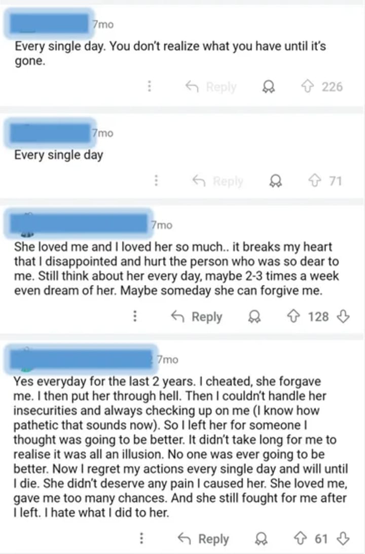 So I fell down another Reddit rabbit hole, this time a gender-specific one. I wanted to know whether men and women regret their past breakups equally.