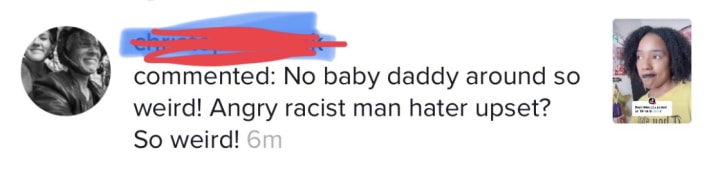 They continue their prejudice commentary of “Weird not your real hair! No daddy at home either? Tell us your black without telling us you’re black…”. I have a poorly placed wig on of green hair; with my real hair spilling out from underneath. “No daddy at home either?”, now this comment can be veered from either racism or which happens often; they do not know how old I am and are trying to guess my age even though I have stated it in my videos before. “Tell us your (you’re) black (Black) without telling us you’re black (Black)”, this is the most direct demonstration of grasping at straws I have seen online.