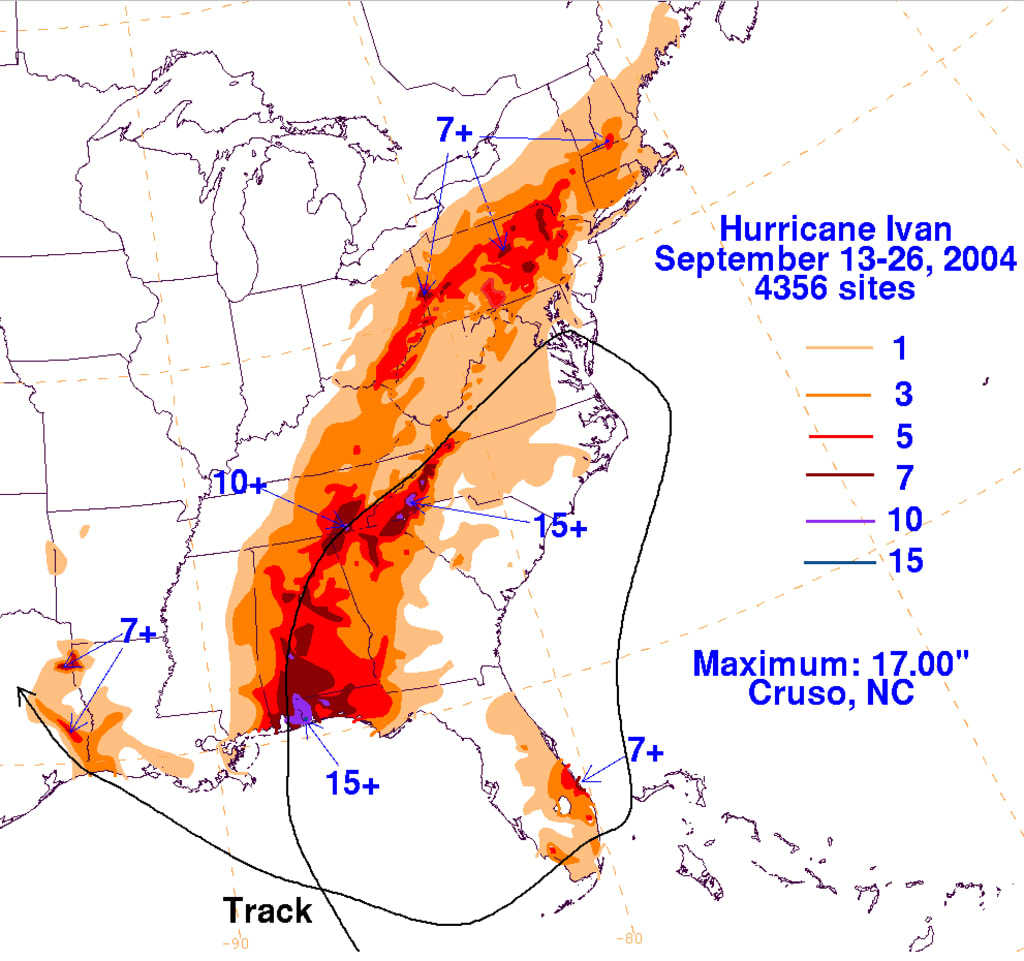 That’s when I had the dream. I dreamt that our creek rose so high, it was at the tops of the trees. The water was raging so hard and so fast, but the odd thing, was that the water was moving in the wrong direction. I guess dreams are weird like that. All that week I had been listening to the radio and keeping track of the weather. Hurricane Ivan was moving up the east coast and was following the Appalachian Mountains. I knew it was going to hit us good. I moved what I could on our land to higher ground to avoid any losses.