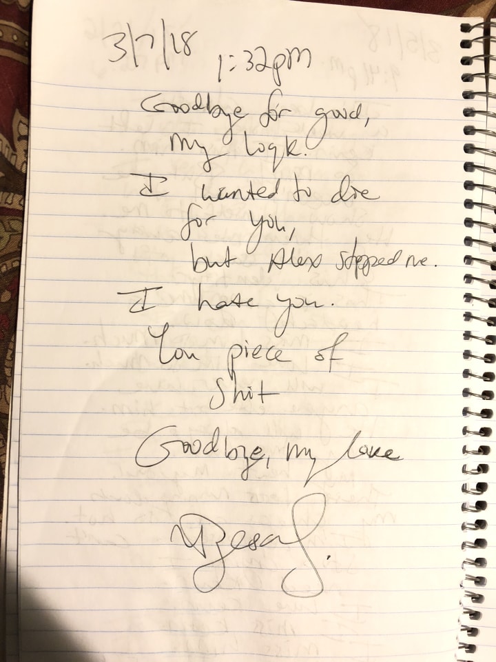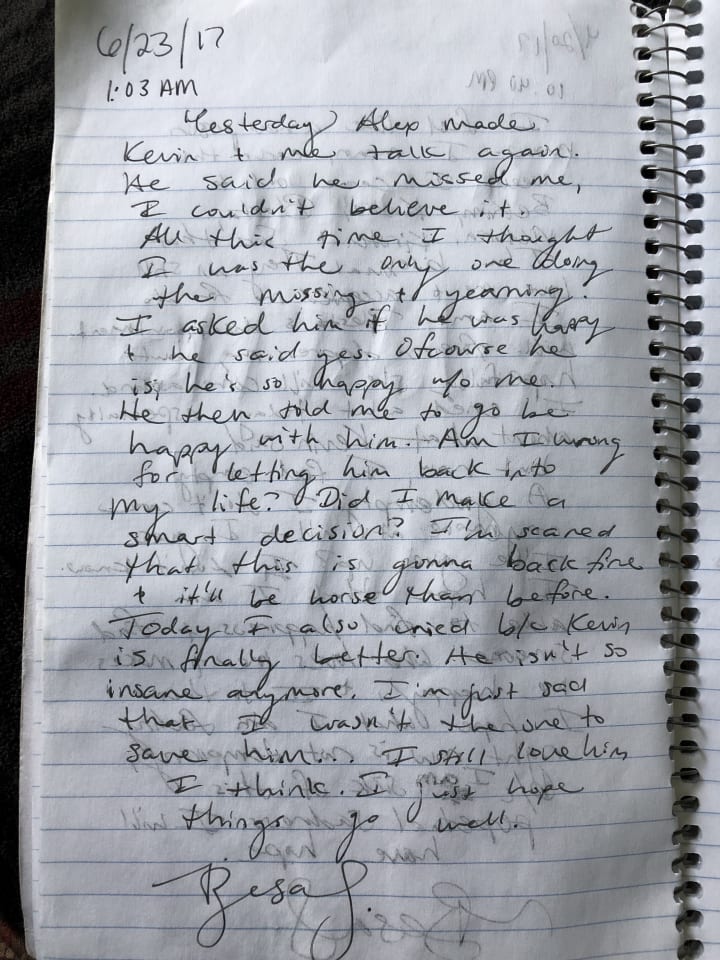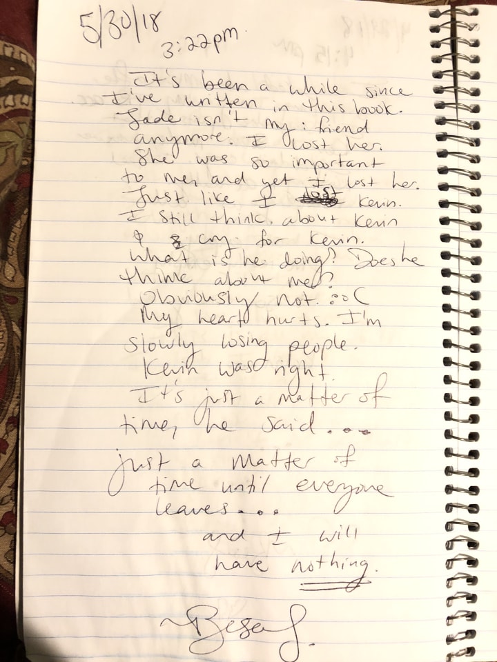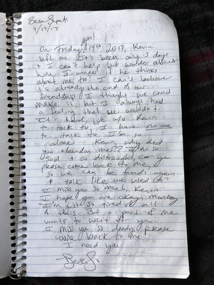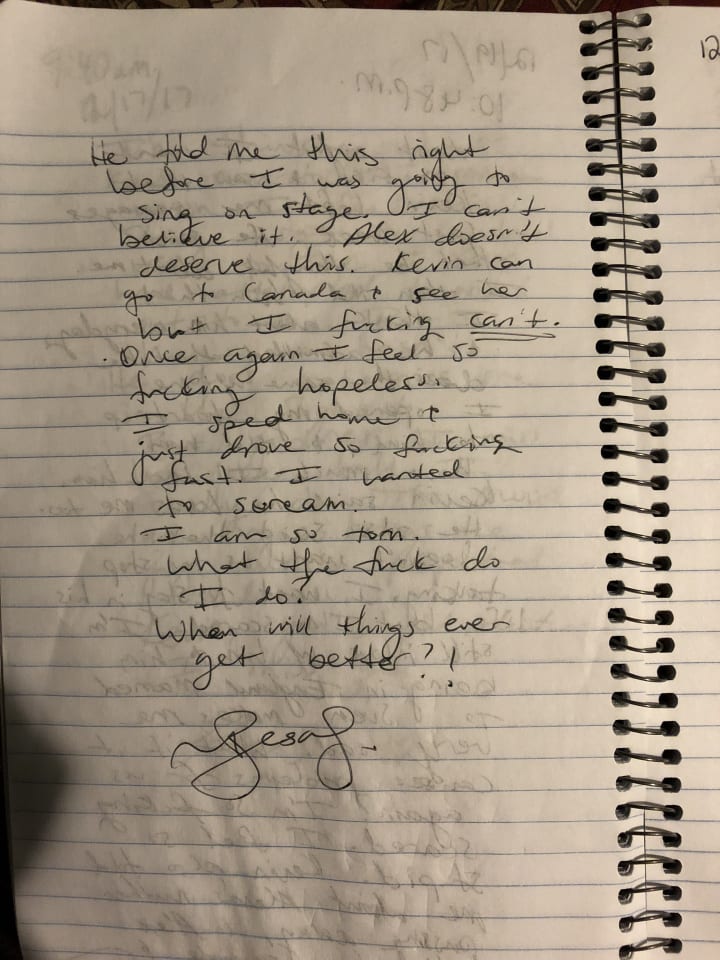 When you open to the first page, it was written a year ago on April 17, 2017. This was the first thing that had split my heart in two, and since I had no one to speak to this about, I wrote it in this notebook.