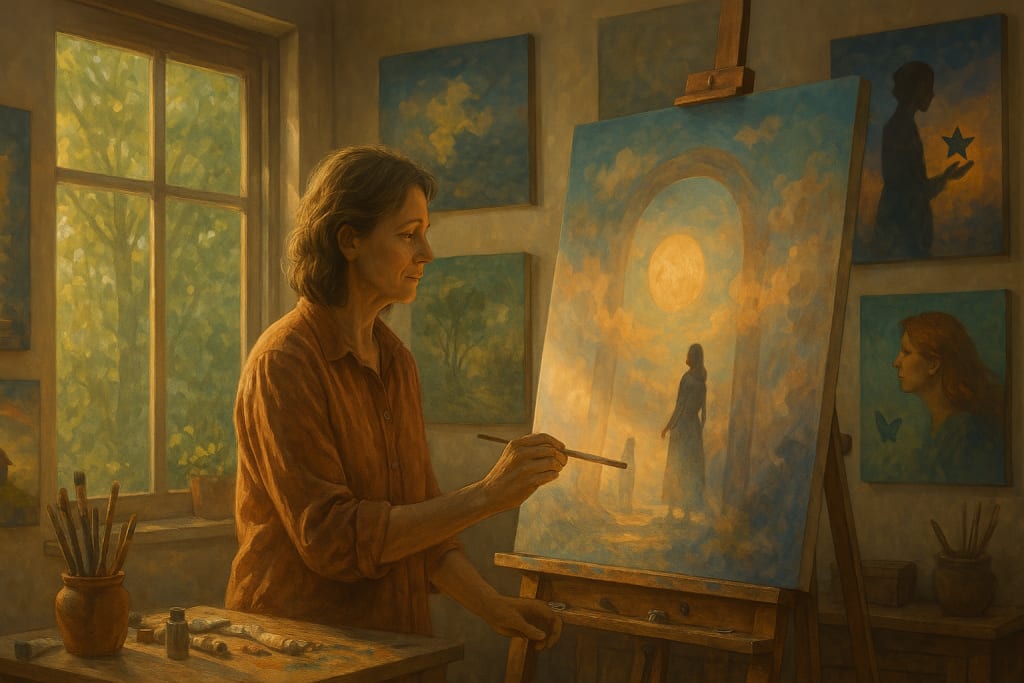That night, Clara dreamed of a woman standing alone on a cliff, gazing at the horizon. The woman’s face was peaceful but tinged with sadness. When Clara woke, she grabbed her brushes and began to paint.