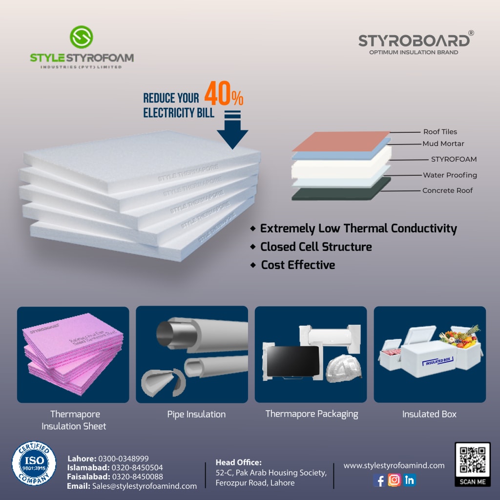 Style Styrofoam Industries (Pvt.) Ltd. is one of the leading Group in Pakistan, manufacturing & supplying extremely high quality of Molded Expanded Polystyrene Sheets (EPS), Pipe Insulation, Eps Packaging, Thermopore Sheet.