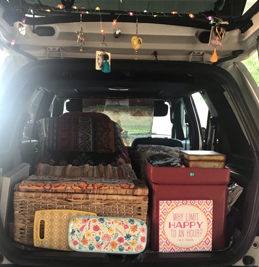 I began to tinker with trying to figure out a way to set up my SUV. My daughter thought I was crazy of course! I’ve always seemed to be the odd one out, and now I was really the odd one WAY WAY out there. But I kept plugging away, rearranging my vehicle, doing more research, seeing what I needed. I also joined a group of women on Facebook who do it full-time, with some part-timers on there too. We shared information about power sources, foam versus air mattresses, safe places to park and boondock, how to store food in your car, how to cook food in your car, and ESPECIALLY how to PEE in your car. We can’t always just pop a squat, being a woman takes a little more planning in that department. But I figured out what works best for me, it was just a matter of hit, and miss, literally!