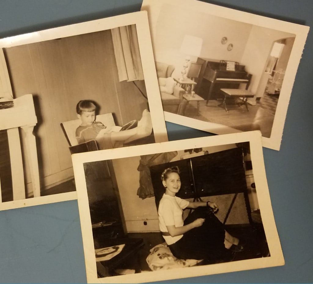 Soon, the piano was finished and somehow put together. The living room was neat and now a somewhat glamourous room with hardwood floors and the little Ethan Allen combo with the barrel made to hold magazines- a stagecoach picture above. The elegant piano now sat in front of draped mint green chiffon which Geraldine had dyed with Ritz- She played Paderewski, Debussy, Boogie Woogy and hymns galore while the Daddy smiled.