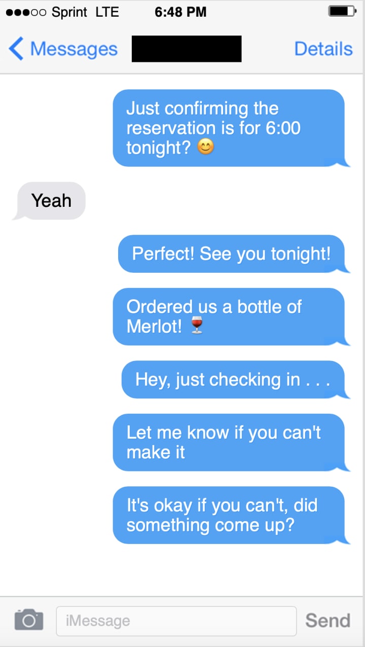 I pulled my phone out again, glancing at my screen. No notifications. I sent a quick message, hoping maybe this time I’d get a response.