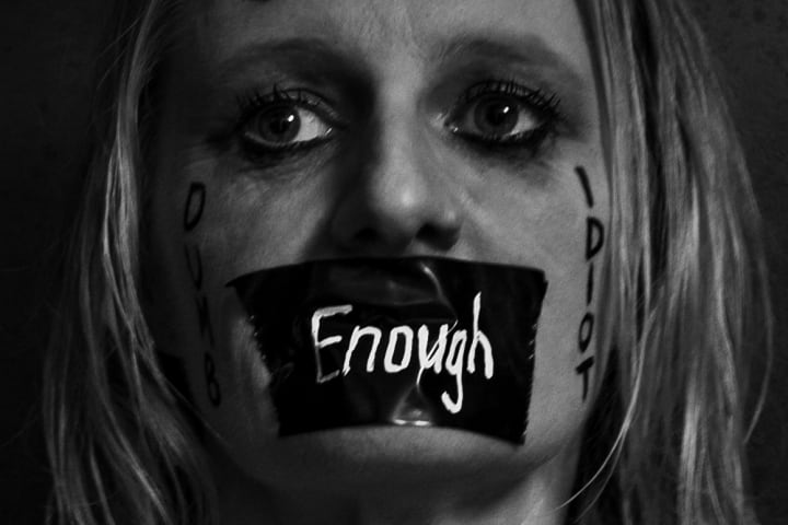 Then we got naked. We wrote those words, those nasty and belittling words, all over our bodies in dark, black, bold writing. We covered our nipples with duct tape and wore small black G-strings. As women we often feel gagged by society so we wrote the word Enough on a piece of tape and smothered our mouths. We stood with our hands, bound, behind our backs to represent the ties our world puts on us as women, the constraints we must wear to fit-in, to conform. I thought it would make me feel uncomfortable. I thought it would bring up old emotions that I had struggled to work through, struggled to work past. I thought it would rip open old wounds, make me feel dirty somehow and make my skin crawl when I saw those words that had been used against me, those words that I had been telling myself for so long. But I was wrong.