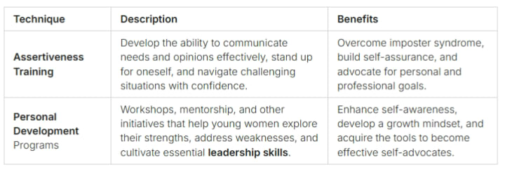 Workshops and mentorship programs are also very helpful. They offer a place where young women can find their strengths and work on their weaknesses. They learn the skills needed to be strong self-advocates.