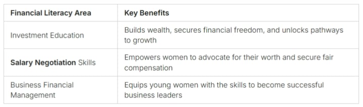 Being able to negotiate salary is crucial for economic empowerment. Young women need to know how to ask for what they're worth and negotiate well. Workshops and mentorship programs help them become confident and skilled negotiators. This leads to financial success in the long run.