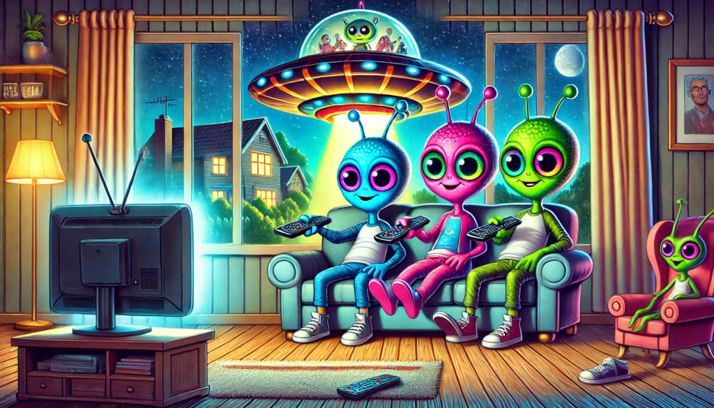 The aliens weren’t so different from us. Sure, they had spaceships and ray guns, but at the end of the day, they just wanted to relax, eat snacks, and watch TV.