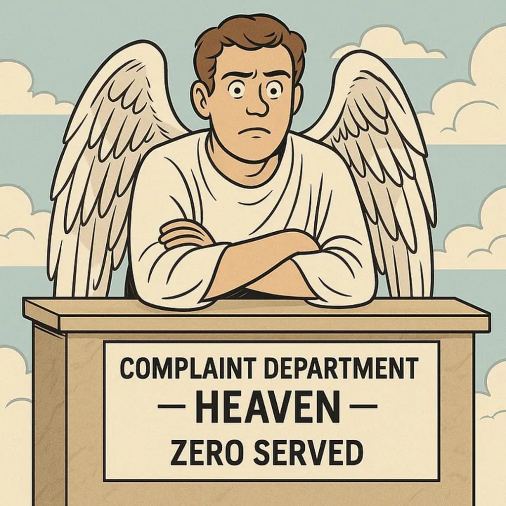 If you made it this far then I hope you enjoyed the read. You can always let me know by giving me a Clap and please leave a Comment telling me what I got right or wrong, because it’s always about improving and getting better. More to come so give me a Follow & Subscribe if you want to be there for it and let’s enjoy some greaA man walks into the Complaint Department in Heaven, startling a very bored-looking angel behind the desk.