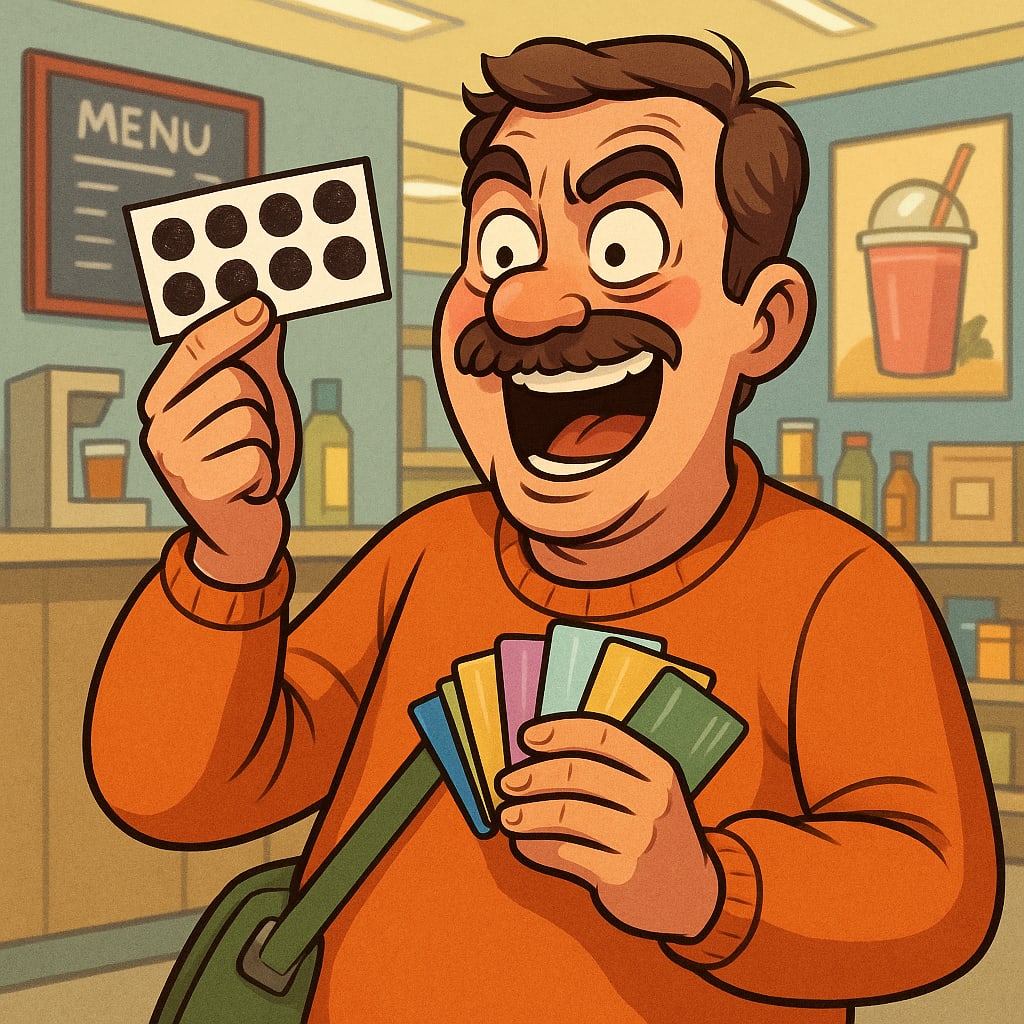 Coffee loyalty programs are the worst offenders. You walk in for caffeine and leave in a multi-year caffeinated codependency contract.