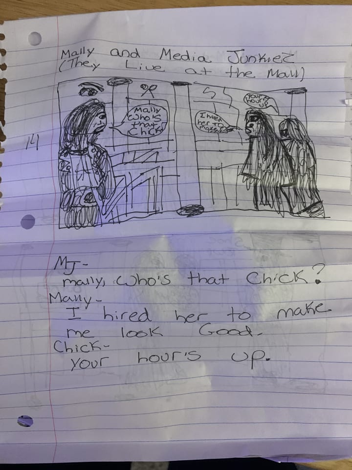and the media junkies began. I started doing a comic trip when I was in high school and then it was relevant things in the world politics and It was just about anything that was happening in the world at that time. None of it Stood the test of time so what I did threw the whole first incarnation of media junkies away and after I decided to redo it and with this comic strip is the second incarnation of they hang out at the mall where a bunch of it takes place and what not.