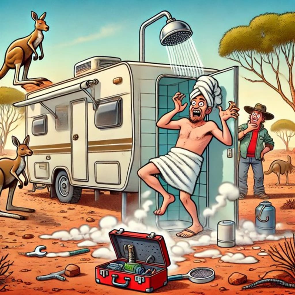 When you're caravanning in the Australian Outback, a good sense of humer is sometimes as essential as a good hot shower. This became crystal clear to me during one memorable trip that I'll never forget, thanks to an unexpected hot water mishap.