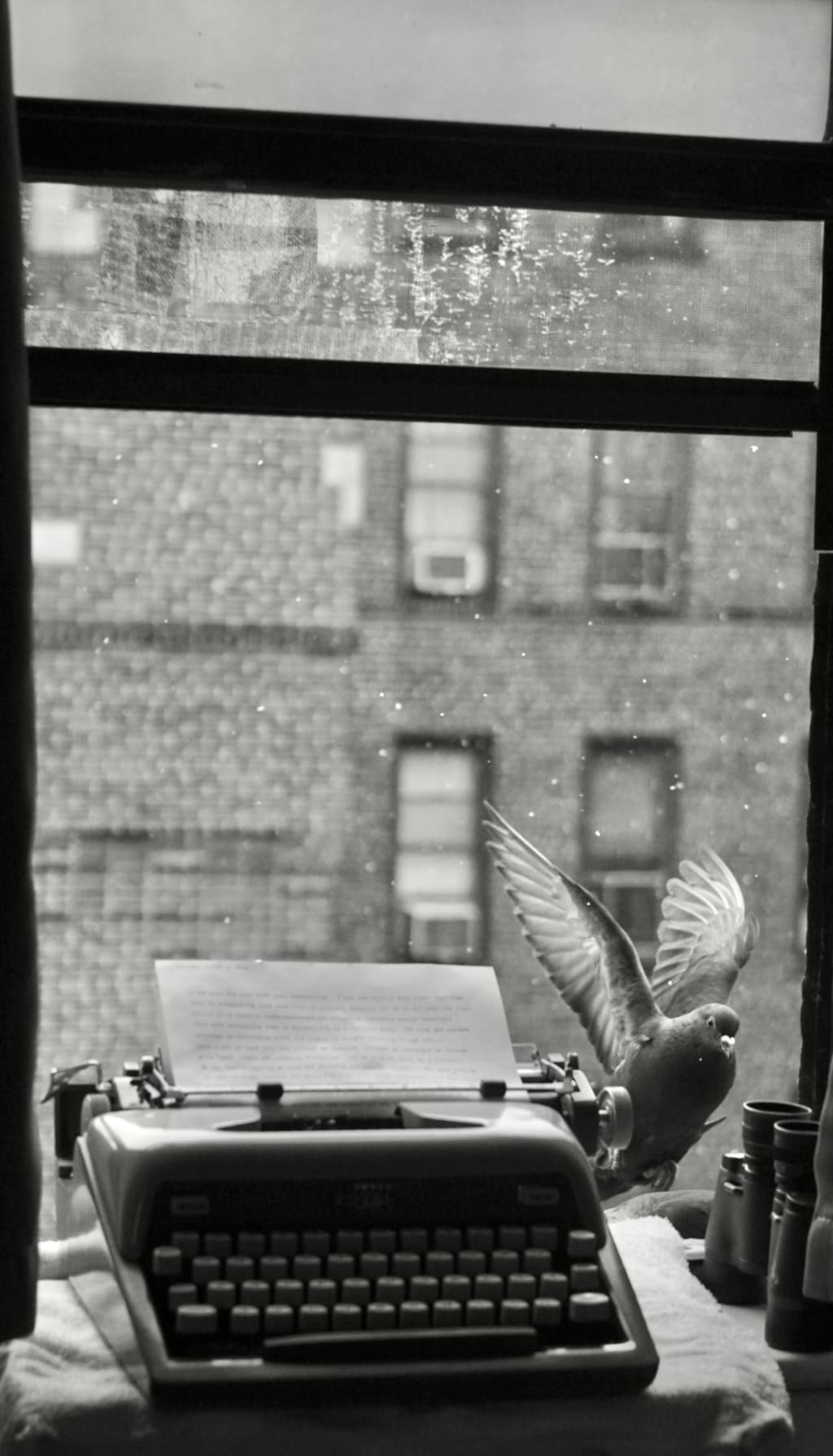 Amongst the many scenarios I had found myself in at that window, it came down to either journaling on my typewriter, or watching my neighborhood birds, like Pigeons, Mourning doves, Starlings, and those little cute birds. I am one of those people that buys seeds to feed to the pigeon flocks that live on my block.