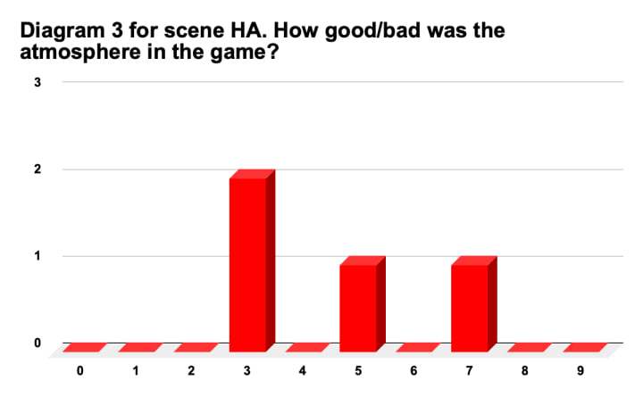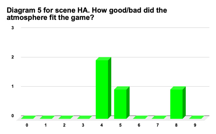 - The players that decided to go with the scene HA were somewhat aligned with one another, one of them decided to score it with a seven and two scored it with a six while the last one scored it with a three. Those answers could be because some of the participants might have felt some nostalgia since, it might have appeared somewhat similar to an existing game that they previously had played.