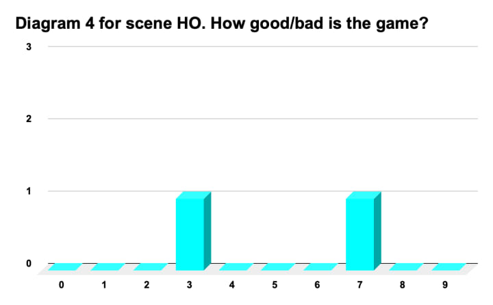 - The players that played the scene HO, there answers were scattered with one scoring the game with a seven and another scoring it with a three this was probably for the same reason that the other scene was relatively scattered.