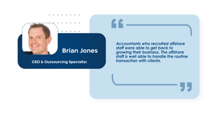 “Accountants who recruited offshore staff were able to get back to growing their business. The offshore staff is well able to handle the routine transaction with clients.”