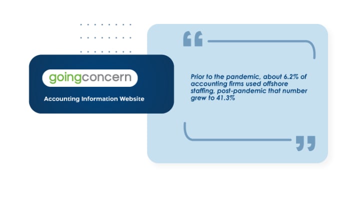 “PwC wanted to send 20% of its core audit hours to India by 2014, this would have been a leap from the 1-2% of work being outsourced at the time that article was written 10+ years ago. Prior to the pandemic, about 6.2% of accounting firms used offshore staffing, post-pandemic that number grew to 41.3% with many more firms not currently offshoring but open to the idea.”