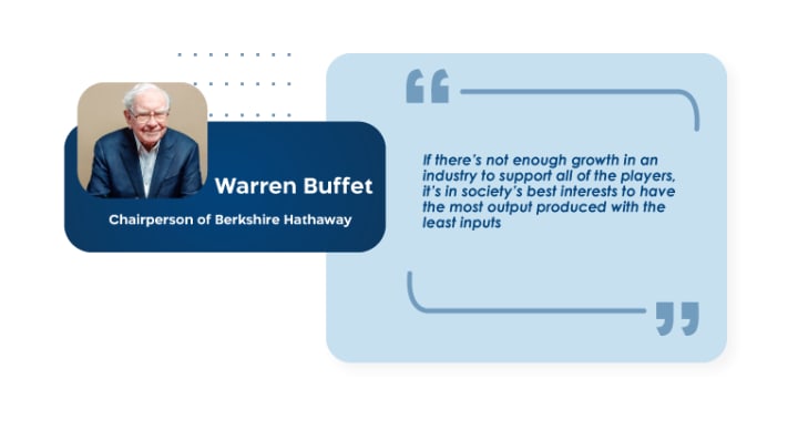 “If there’s not enough growth in an industry to support all of the players, it’s in society’s best interests to have the most output produced with the least inputs – but society needs to help those who find themselves on the outside.” – Warren Buffett, Berkshire Hathaway AGM, 1997.