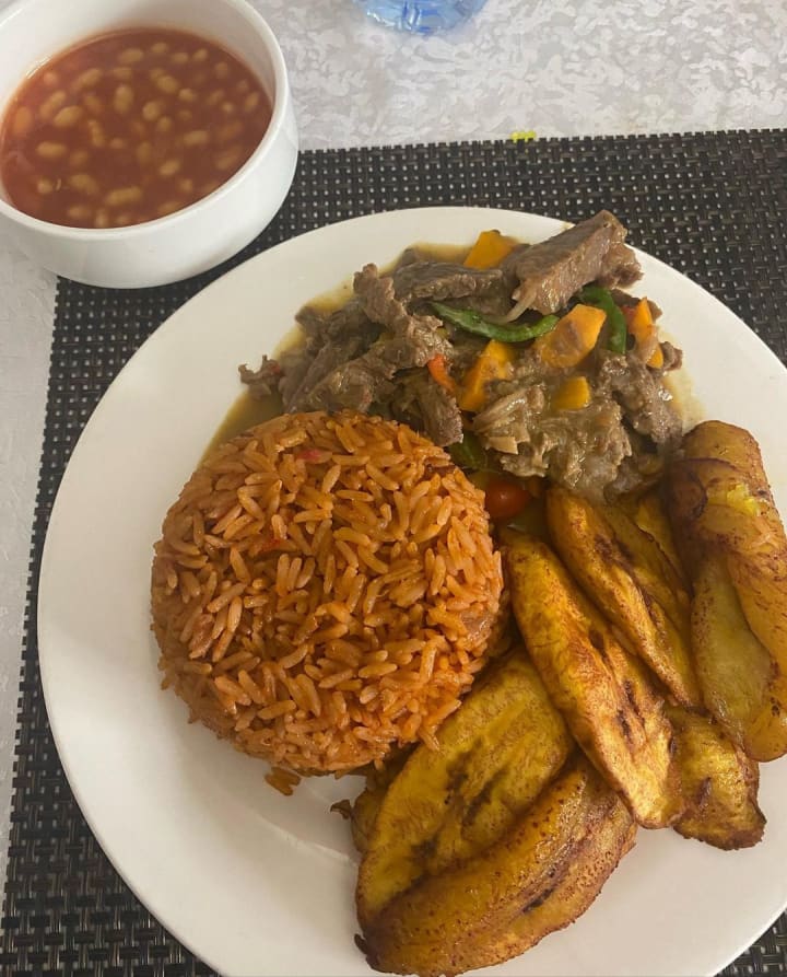 The food is really interesting. At home, my step mum cooks it and she was taught by my aunt. My step mum is white and British, my dad is Nigerian and he doesn’t even cook the food. Everything I have at home is always super hot, hotter than it is here but at home, I have to have milk with it because it’s so hot. At home I love moi moi. The jollof rice here is not as spicy as it is at home, which is great. I had to adapt because my stomach, for the first two days, was hurting because the food was different. But I feel like I’m accustomed to it now and I said to my family that I’m trying to have something different every day just to tell them what I’ve had. I feel like English food is pretty bland, so it’s always good to try something that has a little more flavour.