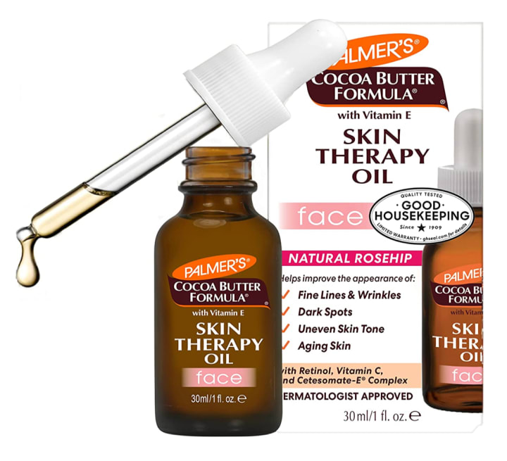 1. Palmer's Cocoa Butter Formula is a popular skincare accessory that is widely used for its moisturizing properties. It is a multi-purpose oil that delivers skin restorative oils for anti-aging skin benefits. This skin therapy oil for the face is made with ten pure oils that help moisturize and smooth fine lines and wrinkles. The special formula of Palmer's Cocoa Butter Formula includes Cocoa Butter to moisturize, Retinol to reduce the appearance of fine lines and wrinkles, Vitamin C to brighten skin and dark spots, and Cetesomate Complex for essential vitamins and nutrients. One of the notable features of Palmer's Cocoa Butter Formula is the use of the finest natural, raw ingredients for soft, hydrated, and beautiful hair and skin. The product line for whole body care includes body butter, creams, balms, lotions, oils, soaps, pregnancy, and stretch mark care. Palmer's supports sustainable production of Shea and Cocoa Butter and Coconut Oil, which allows users to feel good about what they put on their hair and skin. Palmer's has been crafting treatment-oriented beauty products for over 180 years using Cocoa Butter, Coconut Oil, Shea Butter, Olive Oil, and Vitamin E to soothe, hydrate, soften, replenish, and revitalize skin and hair. If you're looking for a high-quality skincare accessory that delivers multiple benefits, Palmer's Cocoa Butter Formula is a great option to consider.