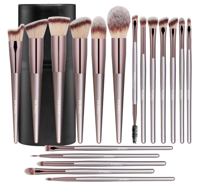 2. The Makeup Brush Set 18 Pcs is a popular accessory for makeup enthusiasts who want to achieve a flawless makeup look. This professional makeup brush set includes 18 brushes for Eye Shadow, Crease Shadow, Concealer, Blush, Foundation, Pressed or Loose Powders, Highlighter & Eyebrows. It is ideal for applying, blending, and shading products, making it easy and convenient for daily makeup use. The premium synthetic fiber used in the Makeup Brush Set 18 Pcs is of high quality, making it well-suited for long-term use. The handles of the brushes are made of high-end alloy and wood material, while the bristles are soft and silky nylon. The brushes are dense and fine, making them suitable for even the most sensitive skin.The Makeup Brush Set 18 Pcs has a chic and fashionable design, featuring the most popular and elegant Champagne Gold color, which makes it a must-have in your cosmetic bag. Additionally, the set is an ideal gift for makeup beginners and enthusiasts alike, as it is easy to use, superior in quality, and available at an affordable price. It comes in a complete assortment, allowing you to keep your makeup tools organized and easily accessible.In summary, if you're looking for a professional makeup brush set that is high in quality, stylish in design, and ideal for gift-giving, the Makeup Brush Set 18 Pcs is a great choice to consider.