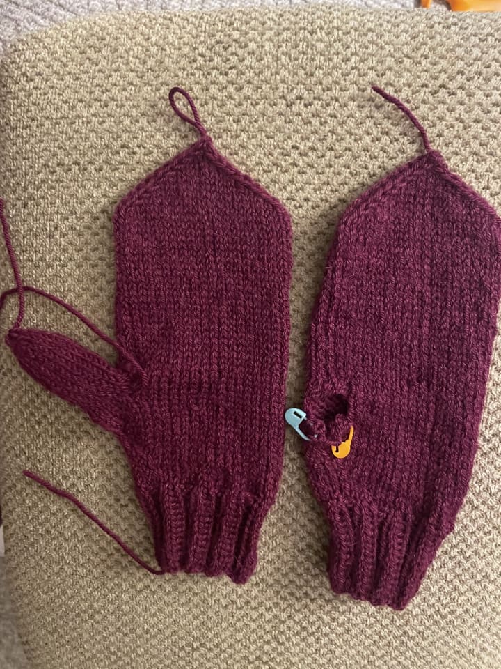 Having distributed group project assignments for one of my classes tomorrow, I went home at 7:30 pm. Really hungry but dinner will have to be something of the leftovers - no time to cook. I had no time for knitting these two days either, so am planning to spend on it at least an hour, to finish the mittens. But alas, was able to finish only one, had no will power for the second one. And still need to tidy up by hiding the ends. At least I made half of the desired progress: