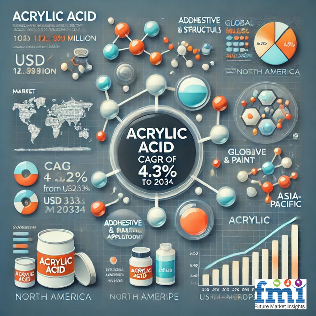 According to a recent study by Future Market Insights, the global sales of acrylic acid is projected to grow at a CAGR of 4.3% from 2024 to 2034, reaching a value of USD 18,203.4 million by 2034, up from USD 11,983 million in 2024. The rise in demand for methacrylate-based polymers for the manufacturing of lighting fixtures, glazing, automotive rear lights, and electronic displays has witnessed significant growth, which in turn, represents prominent growth in the acrylic acid market over the analysis period.