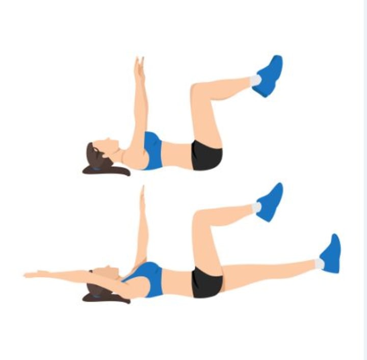 Start by lying flat on the floor with feet flat on the floor and knees bent so that you're in a sitting position. Place hands behind head for support as you lift legs off ground so that they're about 3 inches off ground (don't worry if it's hard at first). Hold this position for 20 seconds then lower back down until feet touch floor again before beginning again with 10 more repetitions each set