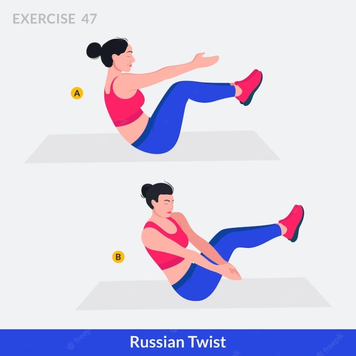 Russian twists are one of the best exercises you can do to lose belly fat, because they work your core muscles (the muscles in your abdominal region) as well as your arms and legs. As you perform them, think about looking up at the ceiling while keeping your body straight like a statue. You can use a medicine ball, dumbbells or resistance band for this exercise—just make sure it's heavy enough to challenge yourself! You may also want to choose whether or not you'll be doing them with feet on the ground or elevated on chairs for greater difficulty levels depending on how much weight you're lifting during each set of reps; if all else fails though don't worry too much about which variation works best because both versions will help sculpt what we're aiming at here: flat abs!