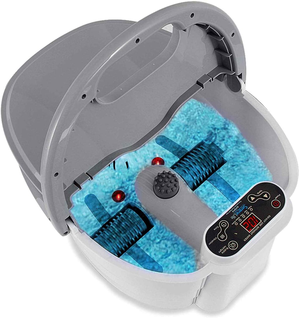 This foot spa massager comes with three customizable acupressure attachments. It allows you to customize the massage according to one’s needs. In addition, the built-in heating system helps in soothing the muscles in the feet and reduces tension among them.