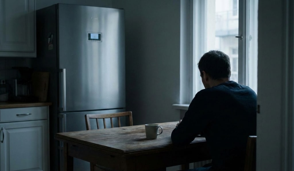 Just the low, steady sound of the refrigerator cycling on and off, as if it has taken on the responsibility of breathing for the room. It does this whether I am paying attention or not. It does this whether I am okay.