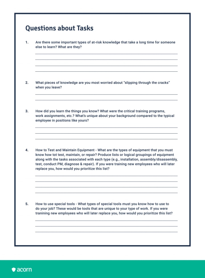 For managers, we know that the risk of lost knowledge is factored into your attrition rate. Turnover could never be at zero for the life of your business (people will always move on even on the best of terms, whether that’s to other opportunities or retirement), which is why a proactive process for knowledge succession.