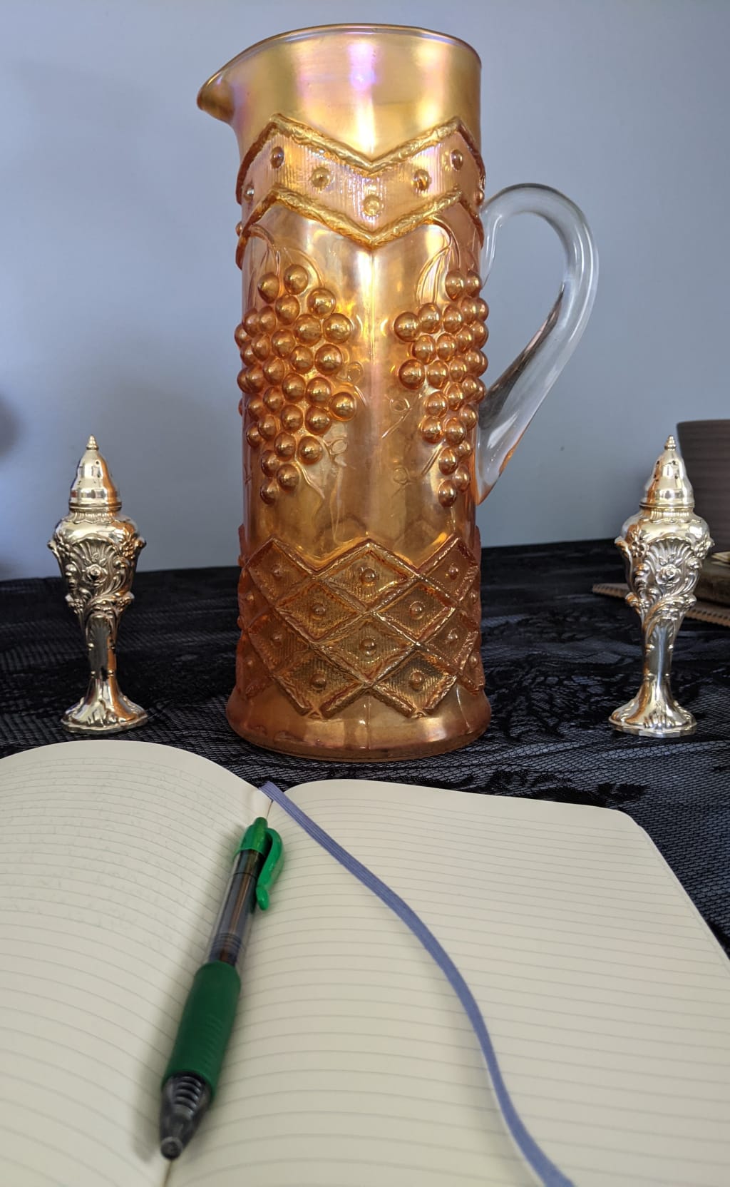 "Start where you are," I tell my niece as she struggles to put the first line on the page. "Start where you are," I tell myself as I start hating myself for not working on something transcendent. Start where you are. Sit down in your own damn life and step into it. Use simple words. Find the beauty in your refrigerator - I'm writing this in my kitchen. Find the truth of you in the color of your walls or the carnival glass pitcher on the table. You don't have to stay here; follow the pitcher to that long ago day when your sister was still alive and your Rottweiler scared the mailman so badly that he practically threw the damn thing at the front door, insured package be damned, and ran for the hills. Remember the way your sister laughed, though she'd stopped laughing by then because she was so sick and cold all the time. Remember that, for a singular moment, she forgot she was going to die and just laughed.