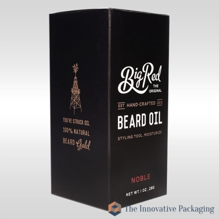 Custom Beard Oil Boxes are not just a fashion image, but they have now become a crucial requirement. In the enterprise, various brands are dominant and unique; you need to get Custom Beard Oil Boxes. If you care about your brand of cosmetic or beard oil, then you must be careful about packaging your stuff. To create your beard oil box distinct from other brands' comparable products, you necessary have inventive ideas. With extraordinary application guidance on it, we give your very individual customized boxes to contain your cosmetic products. You can get these boxes in any kind, style and design. At TheInnovativePackaging, we have specialists who will create your Beard Oil Boxes boxes according to your product.