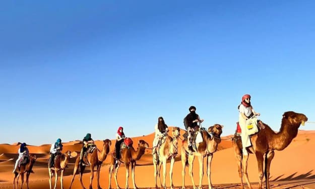 Day 3: Explore the Merzouga Desert → camel trek at sunset → overnight in a desert camp