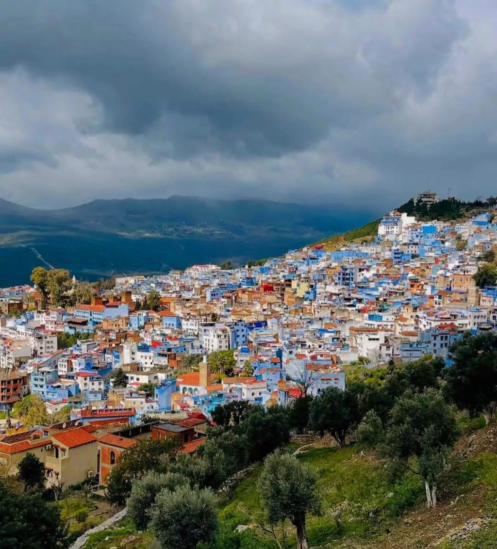 Despite the long journey, Chefchaouen is one of Morocco’s most unique destinations. Nestled in the Rif Mountains, this small town is known for its calm vibe, blue-painted buildings, and stunning mountain views.